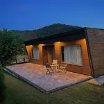 Es gibt eine Küchenzeile mit einem Kühlschrank und Glasgeschirr, die für einen komfortablen täglichen Aufenthalt sorgen. Es gibt eine Sauna zur Entspannung nach einem anstrengenden Tag. Eine Terrasse können Sie speisen und einen Drink genießen.